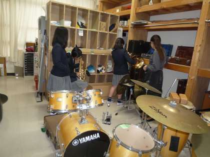 写真は上から卓球部、吹奏楽部、家庭科部 の様子です。