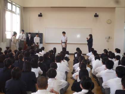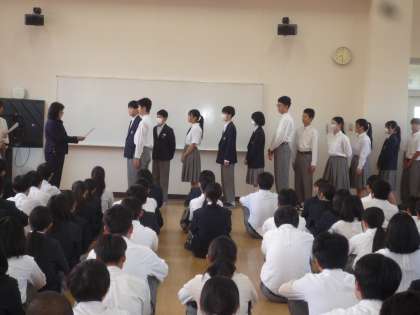 校長先生から、「頼まれる」「頼られる」について、「頼まれる」は具体的に誰かから何かを頼まれる、それに対して「頼られる」は全面的に信頼されてのこと、「頼まれ時は試され時」という言葉がありますので、頼まれた時はそのことに応えられるように力を尽くしてください。そして、いつか頼られる人になってほしいです。とお話がありました。