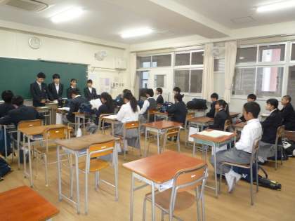 生徒会長、副会長、執行委員と各種委員会の委員長で生徒議会を運営していくにあたって、生徒会担当の先生からのお話を聞きました。