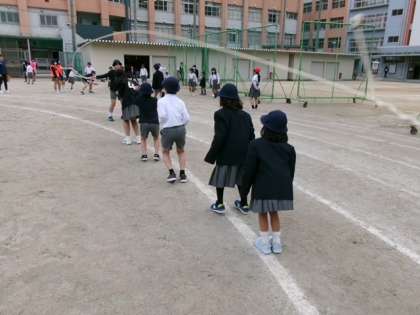 11月6日(木)児童集会はたてわり班でなわとびやドッジボールをして遊びました。