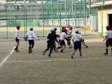 ミニラグビーボールを使ってパスの練習、そして対戦をしています。