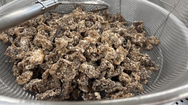 今日はくじらのたつたあげです。揚げたてのくじらは、噛めば噛むほど旨味が出ます。