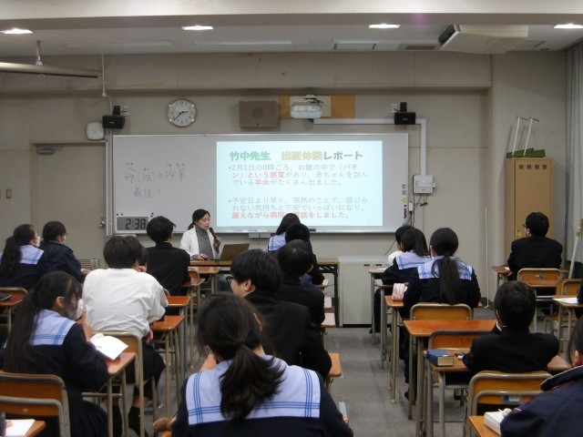 男女とも、それぞれ教室にて、保健分野の学習に取り組んでいます。