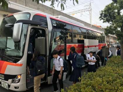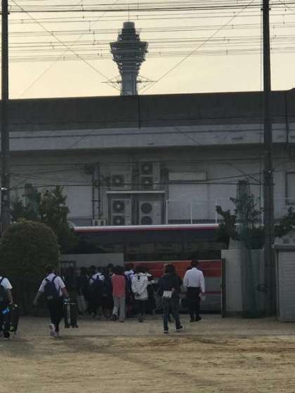 6時50分、たくさんの先生や保護者に見送られながらバスは伊丹空港へ向けて出発。
