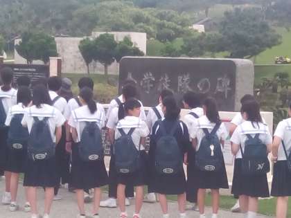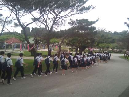 平和祈念公園に到着しました。ここで平和の礎フィールドワークを行います。