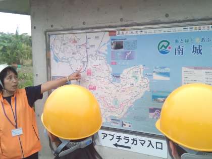 ガイドさんから説明を聞き、ガマの中に入ります。