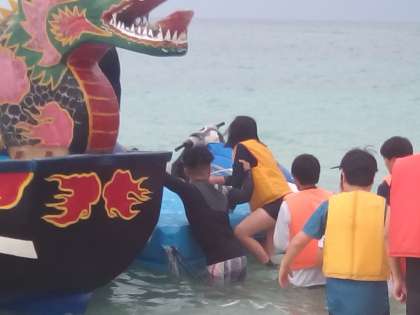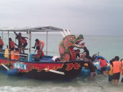 A班はグラスボートに乗り込みます。これが、なかなか大変。
