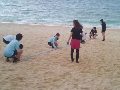 午後は海レク係が中心となり、ドッチボールやリレーで楽しむ予定です。昼食後すぐに、準備を始めています。ご苦労さまです。頑張って。