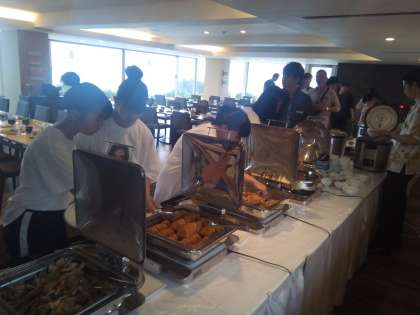 夕食はバイキングです。海が見えるレストランで、美味しくいただきます。