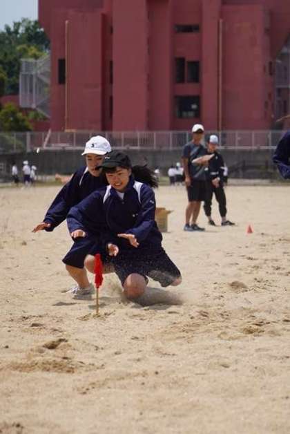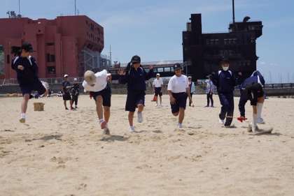 男女別・勝ち抜き戦で、ビーチフラッグ大会が行われました。