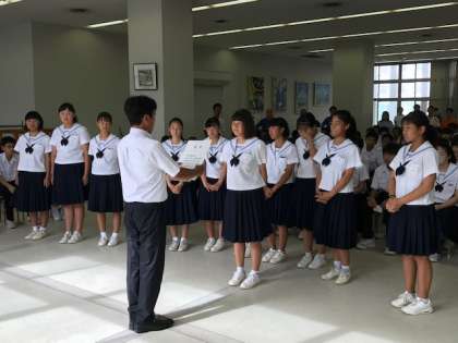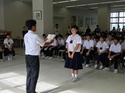 また全校集会では賞状の伝達も行われ、ソフトボール部、パソコン部の生徒が表彰されました。