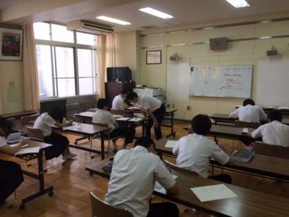 3年生の数学の授業は、習熟度別少人数授業です。教室と会議室に分かれて行っています。どちらの授業も「確率」の単元をわかりやすく丁寧に教わりました。