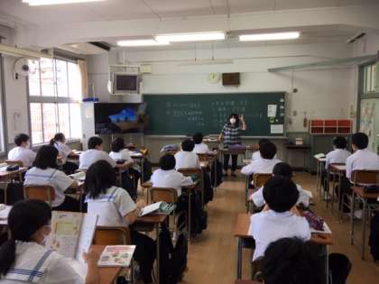 1年生の3、4時間目の授業は、技術と家庭科です。これが終われば、待ちに待った給食です。