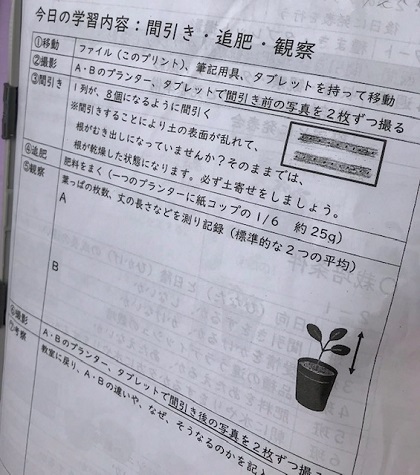 前回の授業から1週間が経過しましたが、はつか大根は順調に育っています。