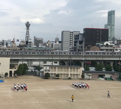 密にならないよう、昨年より大きく間隔を取りながら、子どもたちは行進やラジオ体操の練習に励みました。
