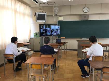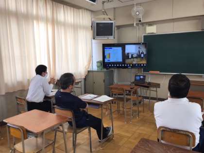 本校でも、数学科と社会科の教員は学校に残って、オンラインでの研究発表会に参加しました。