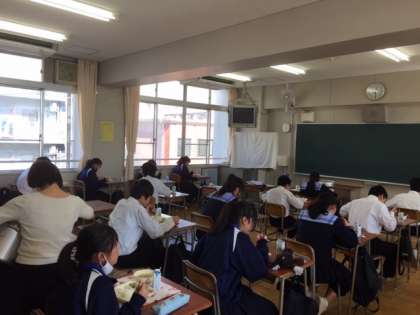 今日の献立は、かつおのマリネ焼き〔ノンエッグドレッシング〕、ウインナーと野菜のスープ、もやしとピーマンのソテー、ご飯、牛乳です。ノンエッグドレッシングは、マヨネーズのような味がしますが、卵は使用していません。みんなで美味しくいただきました。