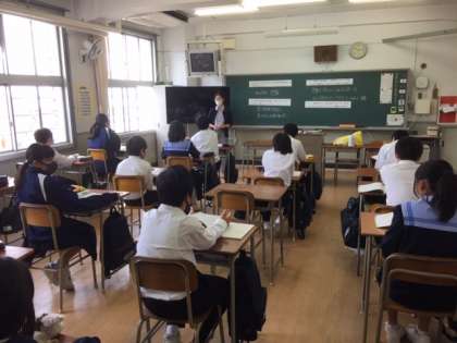 22日(木)大阪市教育センターの先生(指導員)に来ていただき、若手教員の研究授業(道徳)を実施しました。「言葉の向こうに」という読み物教材を使い、「認め合う心」を主題に授業を行いました。実際にSNS上でのトラブルも起こっています。今日の授業で、自分のコミュニケーションの在り方を振り返り、他者の見方・考え方を尊重することを理解し、寛容の心を持つことが大切だと感じてくれたでしょうか。