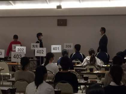 食事の前に、入所式を行いました。今日、明日、楽しい思い出を作ります。