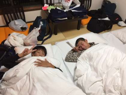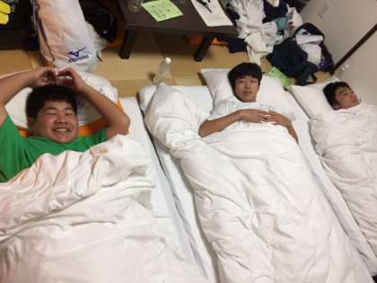 スタンツが終わり、消灯の準備です。男子の部屋の中は、まあまあたいへんです。