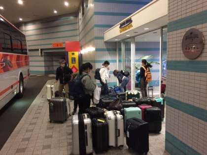 予定通り、17時30分にホテルに到着しました。入口での検温も全員クリアしました。オシャレなホテルです。