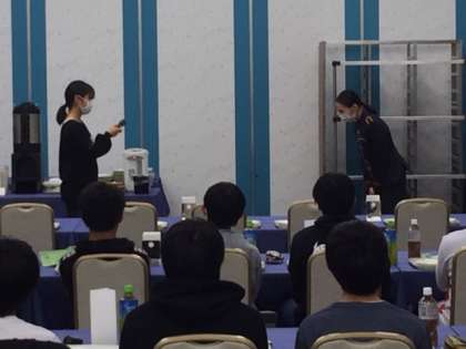 入所式です。ホテルの方から、明日はしっかりUSJを楽しむために今夜はよく寝てくださいね。と話しがありました。生徒の代表は、ルールを守ってしっかり楽しみますと話してくれました。