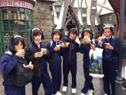 「バタービール」を飲んでいます。もちろん、ノンアルコールで〜す。