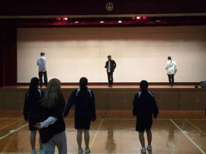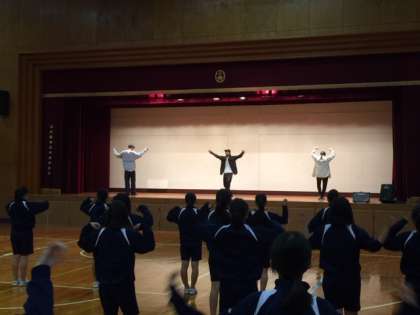 3年生は、3、4限目にダンス体験を行いました。Having Fun Dance Session のみなさんが、なんと総勢8名も来てくれて、ダンスを教えてくれました。コロナ禍で制限がかかる中、体育館で換気に気を付けての実施となりました。