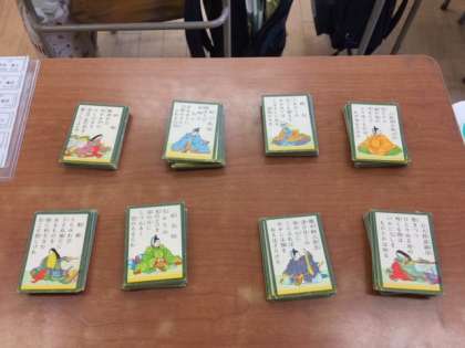 百人一首の練習です。取るスピードもかなり速くなってきました。