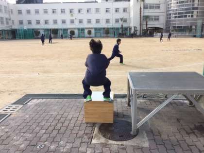 陸上部は台の上にジャンプして上がるきついトレーニング中です(写真下)