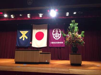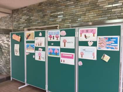 雨も持ちこたえています。準備も終わり、後は卒業生の登校を待つばかりです。玄関にはパソコン部作成の卒業お祝いメッセージがあります。