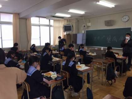 下の写真は、昼休みに音楽を流してくれている生徒会役員です。コロナ禍の中、給食中に会話をする機会がなくなったため、LTM(ランチタイムミュージック)で楽しく食べられるようにしてくれています。
