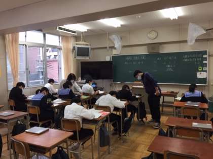 2分割で行っています。2年生になって、やる気を見せている生徒もおりみんな集中しています。
