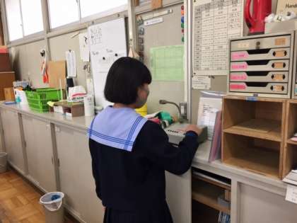 「いじめについて考える日」、生徒会長から「誰かに相談することで、気持ちが楽になります。木津中学校をいじめのない、いい学校にしていきましょう。」と放送で話がありました。