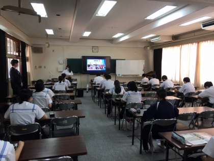5、6限の時間に、常翔学園高校の先生と本校出身の高校生に来ていただき、出前授業をしてもらいました。進路を考え始めるこの時期に、貴重な経験をさせてもらいました。