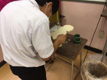 今日は「カッティングボード」を作成しています。電動のこぎりを使ったり、やすりで削って角をなくしたり、自分のペースで作っています。完成が楽しみですね。