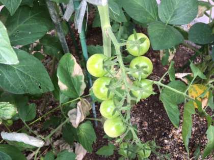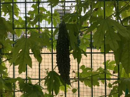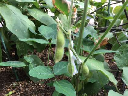早朝に雨が降りましたが、現在は上がっています。今日の暑さは、いつもよりましでした。たくさんの日光を浴び、水分もしっかり取って、ゴーヤに枝豆にミニトマトが成長しています。