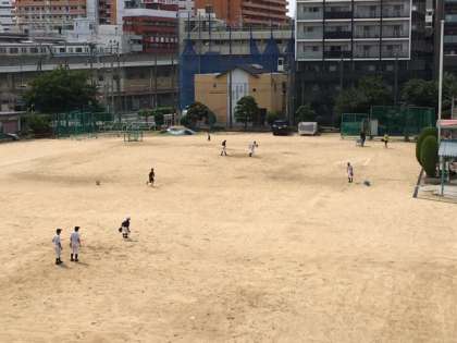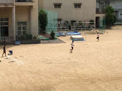グラウンドでは、野球部と陸上部が練習中です。新型コロナウイルス対策と熱中症対策の両方を行いながらの活動になります。