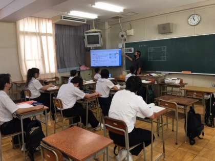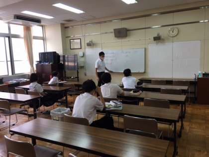 3年生数学の授業も1クラスを2分割で行っています。とてもわかりやすいです。換気もしっかりできています。