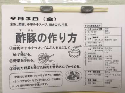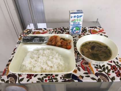 献立は、酢豚、中華みそスープ、焼きのり、ご飯、牛乳です。美味しくいただきました。