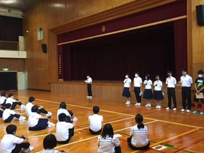 また、その後、選挙管理委員長から、先週行われた後期生徒会役員選挙の結果、立候補した6人全員が信任されと報告がありました。6人が木津中学校を引っ張って、さらに木津中学校がよくなると確信しています。