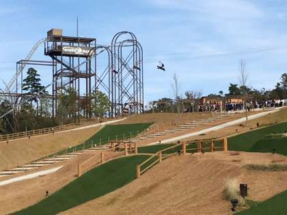 たくさんの修学旅行生が来ています。スカイイーグルは結構待ち時間が長いです。でも気持ち良さそうです。