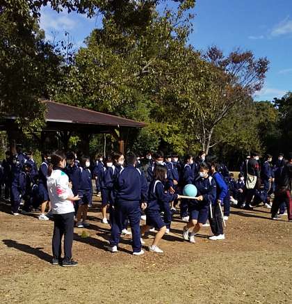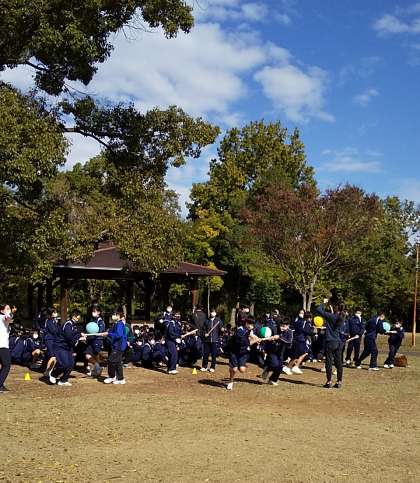 棒の上にボールを乗せて、リレーします。最後までしっかり応援出来ました。