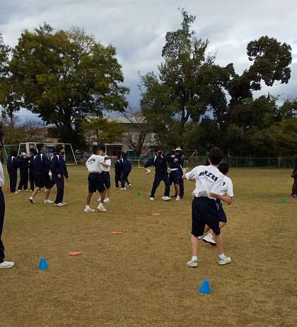 1年生はクラス対抗のドッヂボールです。ボールは柔らかいボールを使っています。