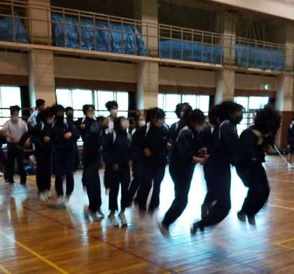 2年生は、全員で跳ぶ大縄跳びに挑戦です。