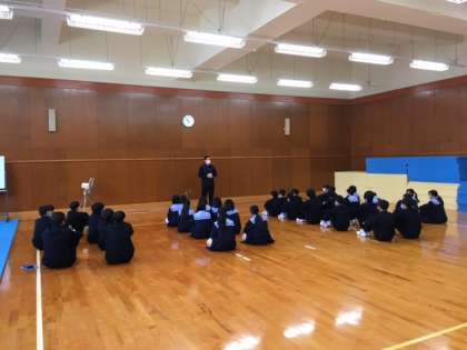昨日一泊移住から帰ってきた1、2年生は、2限目から登校し健康観察を行いました。