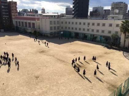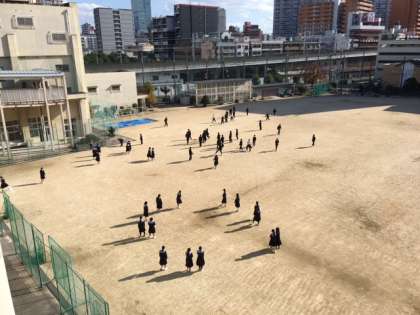 球技大会が近づいてきました。全校生徒の半数以上がグラウンドで、バレーボールをしています。