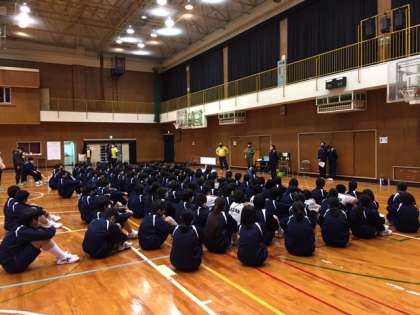 10日(金)午後から全校球技大会を開催します。開会式では、力強い選手宣誓とルール説明がありました。