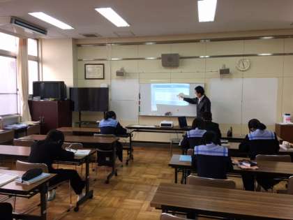 クラスを2つに分け、少人数で行っています。いよいよ終業式まで後2週間、入試に向けて集中しています。
