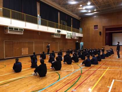 始業式の後、3年生はそのまま体育館に残り学年集会を行いました。学年主任の先生から高校入試についてのお話がありました。